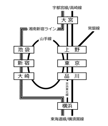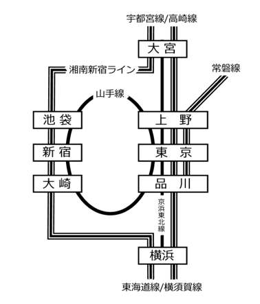 池袋/新宿を経由して宇都宮線/高崎線方面と東海道線/横須賀線方面