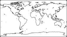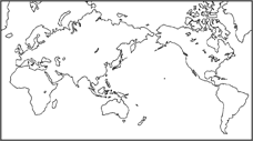 私たちが見慣れている世界地図は、太平洋を中心にして真ん中上に日本、右端にアメリカ大陸、左端にヨーロッパとアフリカが描かれています(中央に近いところに日付変更線があります)。