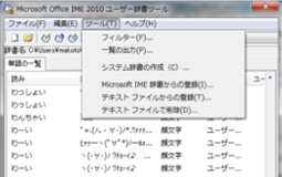 このUSBメモリーを新しいPCにさして、そちらのIMEから「ユーザー辞書ツール」を開きます。