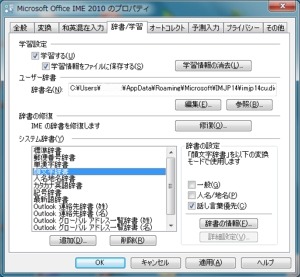 ここでは標準辞書のほかに、パソコン全体が使う「システム辞書」として、どういう辞書を使うかを設定しています。