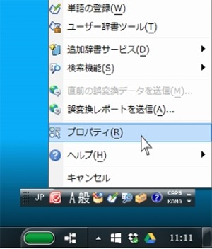 (IME(漢字変換)のプロパティを見る)